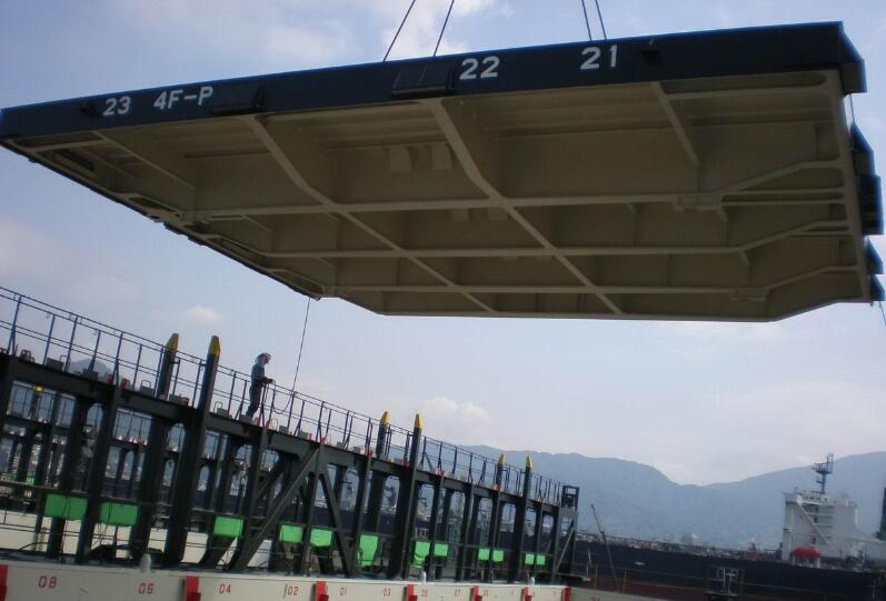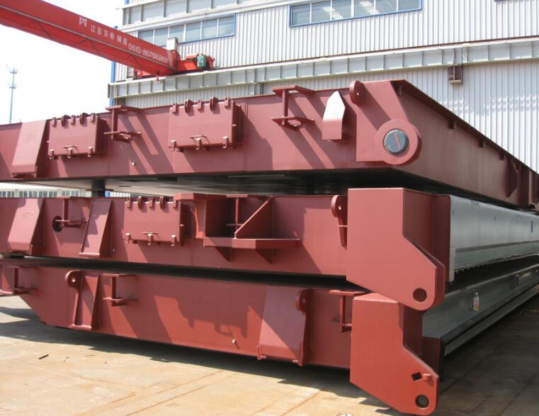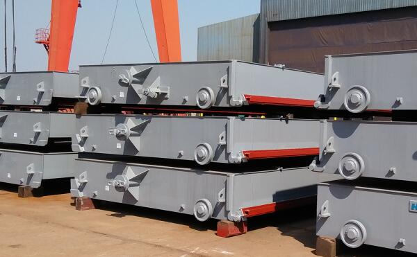 吊離式艙口蓋是運用吊機進行吊離堆放,以達到開關(guān)艙口為目的的高效迅速的運行系統(tǒng)。艙口蓋上布置有箱角,可以用來裝載集裝箱,HST制作的吊離式艙口蓋主要用于2239TEU,3100TEU,9400TEU,11500TEU以及14000TEU等等。