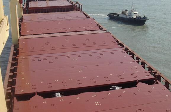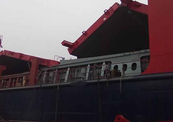 單拉式艙口蓋是通過兩側(cè)的鏈條連接的。艙口蓋的長度不長,在運行期間,艙口蓋上兩側(cè)的平滾輪在艙口圍上還有導向鏈輪和圓鋼等限位裝置。船頭和船尾有固定位置讓艙口蓋垂直存放。